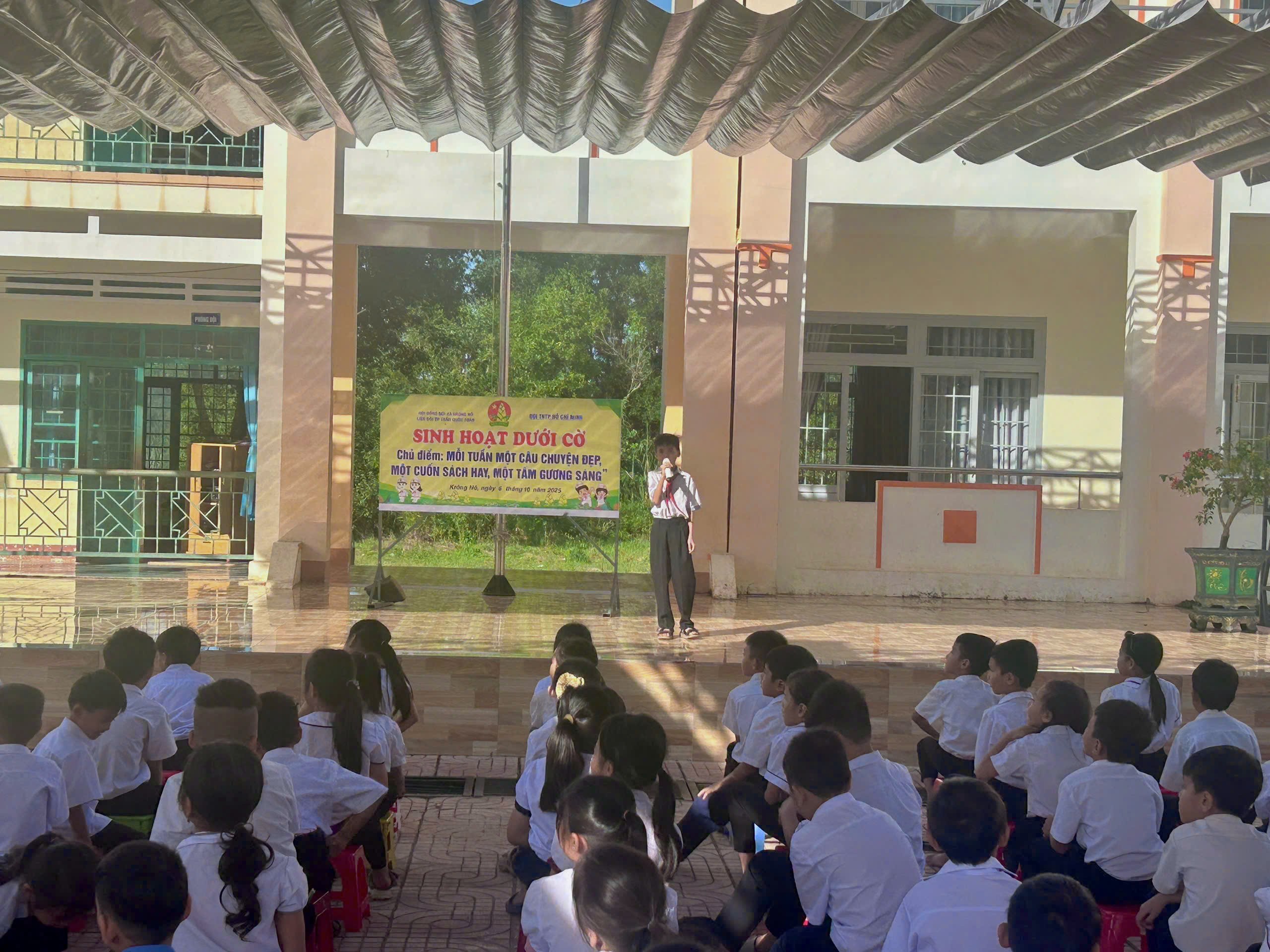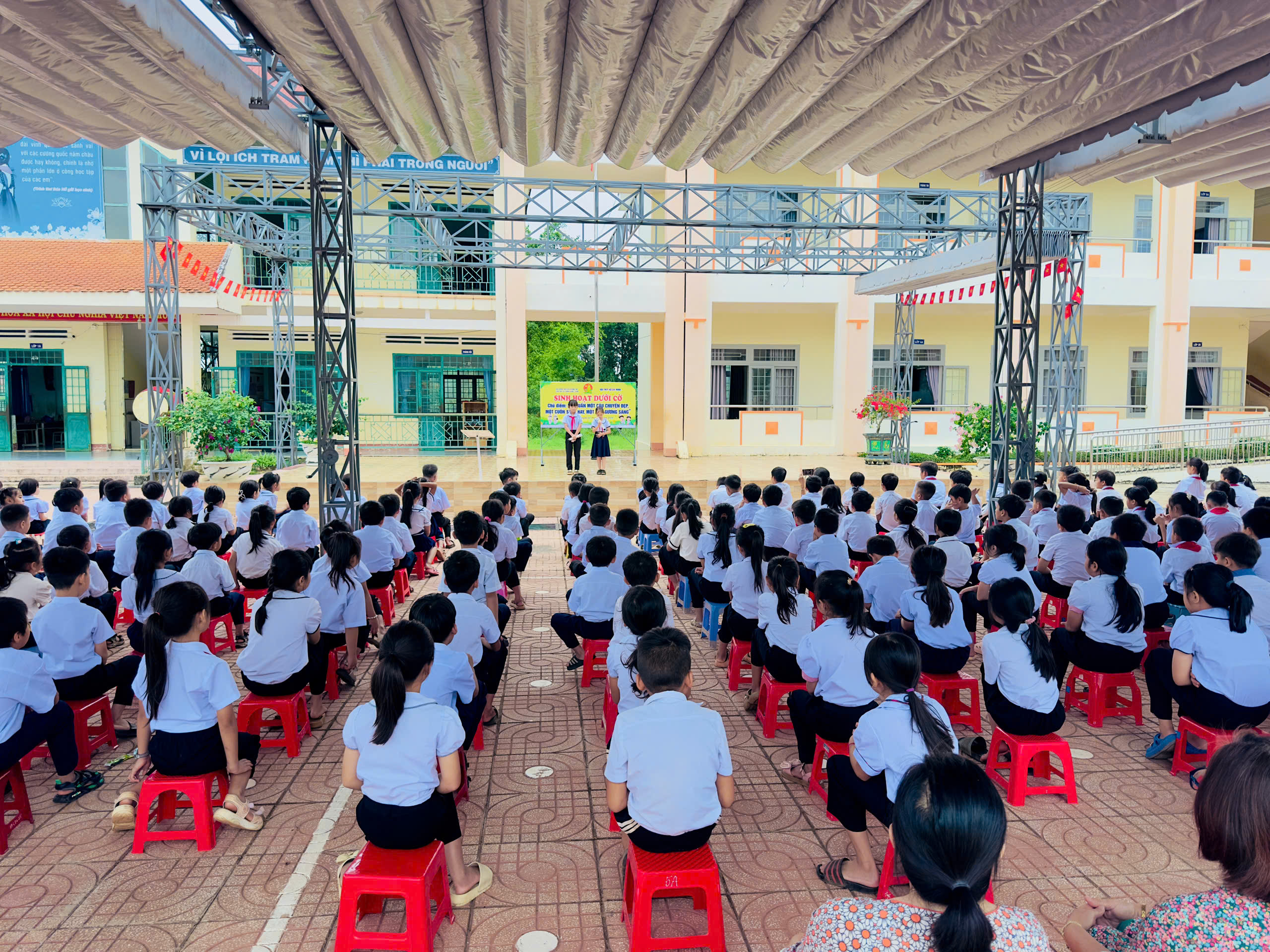 - Trong các buổi sinh hoạt dưới cờ lồng ghép chương trình “Mỗi tuần một câu chuyện đẹp, một cuốn sách hay, một tấm gương sáng” giúp học sinh rèn luyện đạo đức, nuôi dưỡng tinh thần học tập, sống đẹp mỗi ngày.