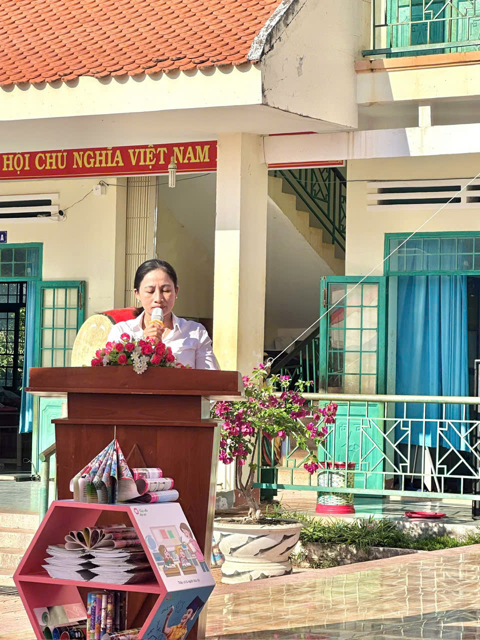 Buổi phát động diễn ra trong không khí vui tươi, sôi nổi với sự tham dự của Ban giám hiệu nhà trường, đại diện các tổ chuyên môn, Liên đội cùng toàn thể học sinh. Tại đây, cô Nguyễn Thị Thanh Nga – Bí thư chi bộ – Hiệu trưởng nhà trường – đã phát biểu khai mạc, nhấn mạnh ý nghĩa của việc đọc sách, học tập suốt đời trong thời đại công nghệ số, giúp học sinh hình thành thói quen tự học, tự đọc, tự khám phá tri thức mỗi ngày.