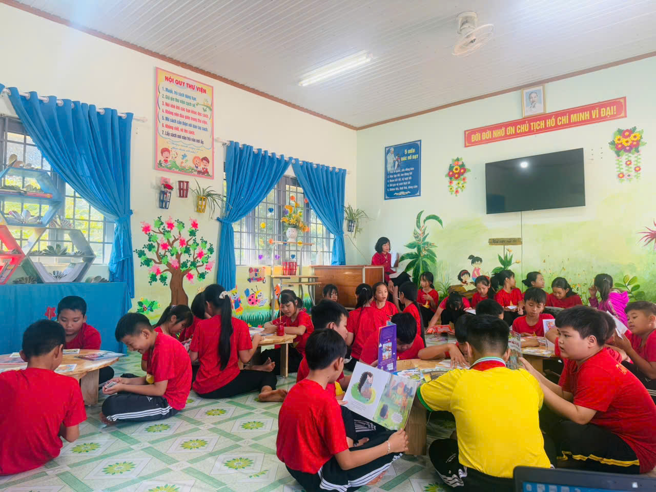 - Tổ chức thi kể chuyện theo sách, trưng bày sách học tập suốt đời, và giới thiệu thư viện số của trường giúp học sinh tiếp cận tri thức mọi lúc, mọi nơi.
